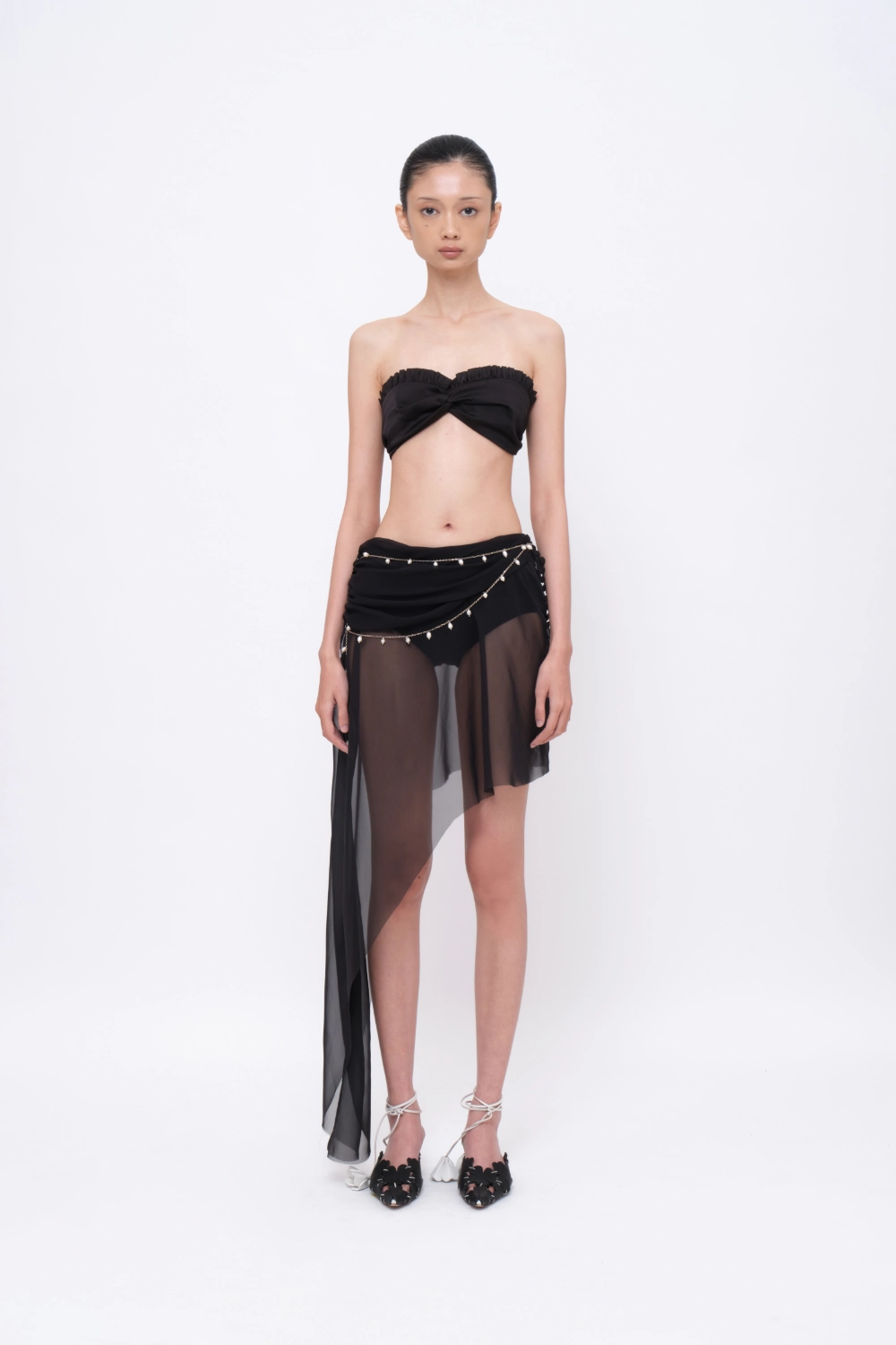 Asymmetrical Pearl-chain Draped Skirt