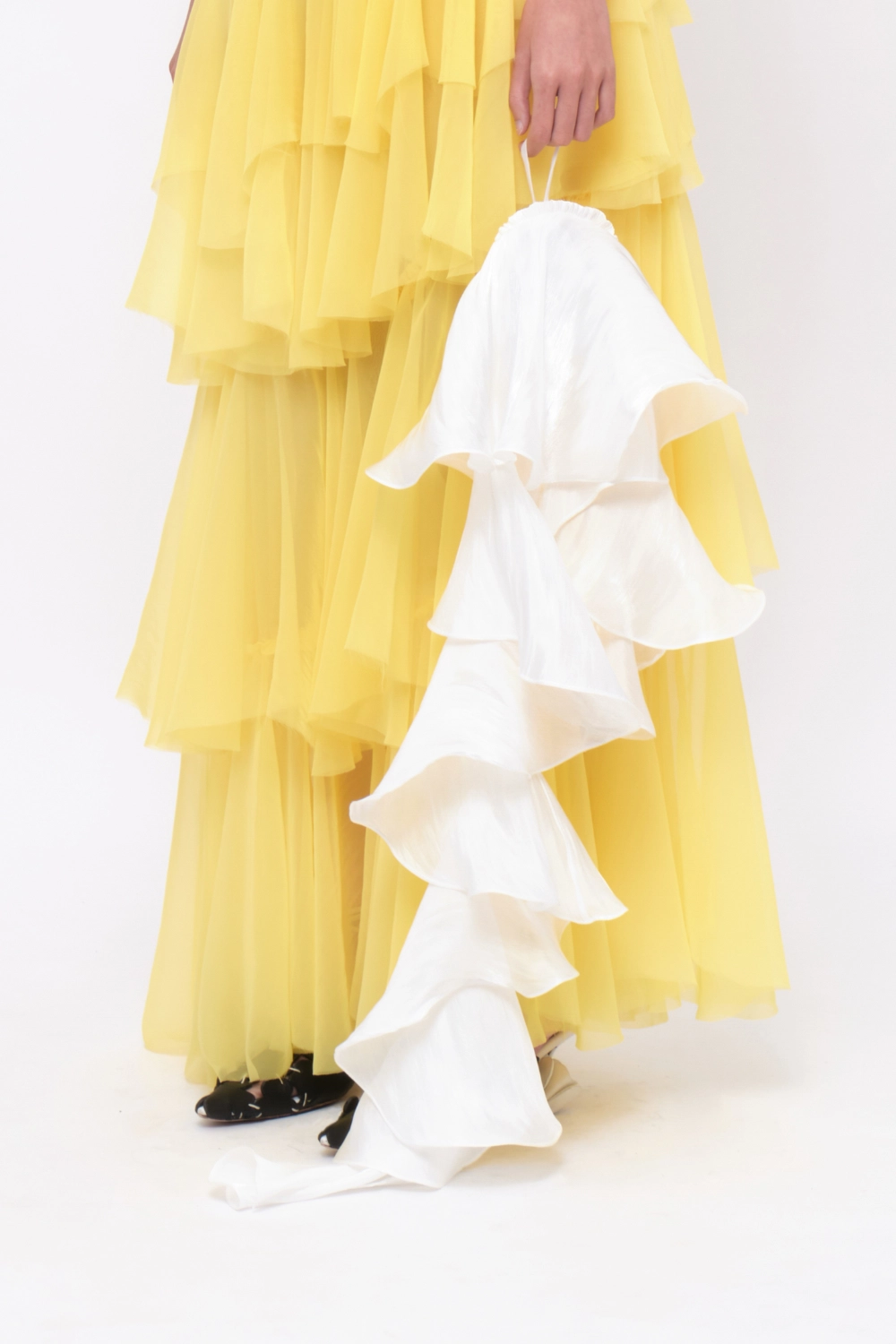 Handheld Tiered Ruffle Mini Amulet Pouch White