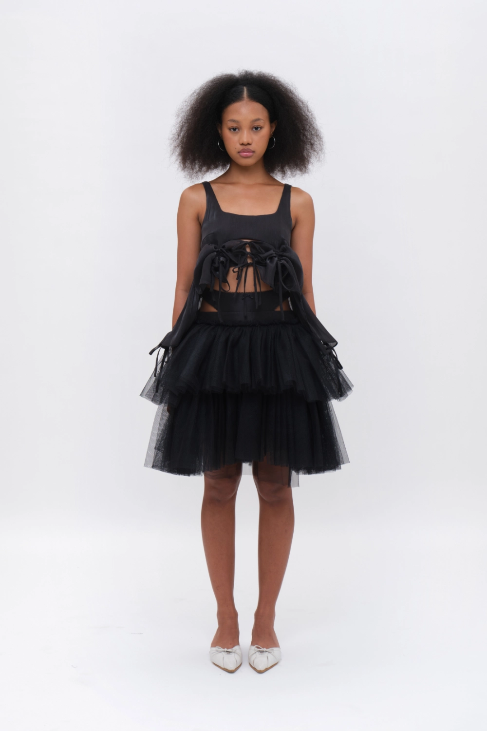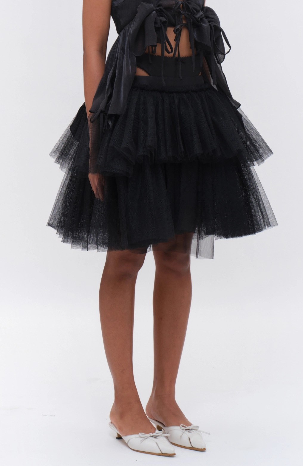Lace-trimmed Cut-out Two-tier Tulle Skirt Black