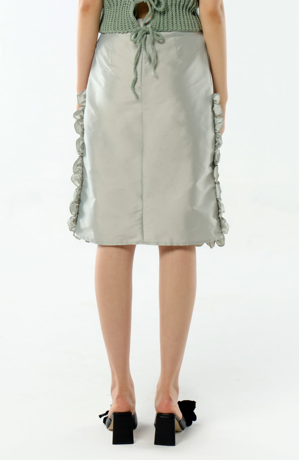 Straight Skirt with Ruffles Sage
